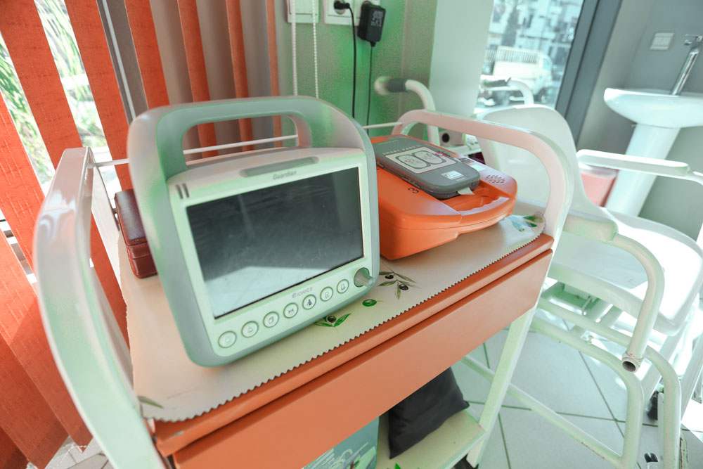 Le centre du Rein NAKHIL est équipé de tout le matériel permettant d’apporter au patients les premiers soins d’urgence : défibrillateur, ECG, extracteur d’oxygène, aspirateur, et matériel d’intubation.